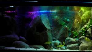 Das Aquarium für den Blue Dempsey sollte mit einem Sandboden und zahlreichen Wurzeln und Steinen eingerichtet werden, so dass zahlreiche Versteck- und Reviermöglichkeiten entstehen.