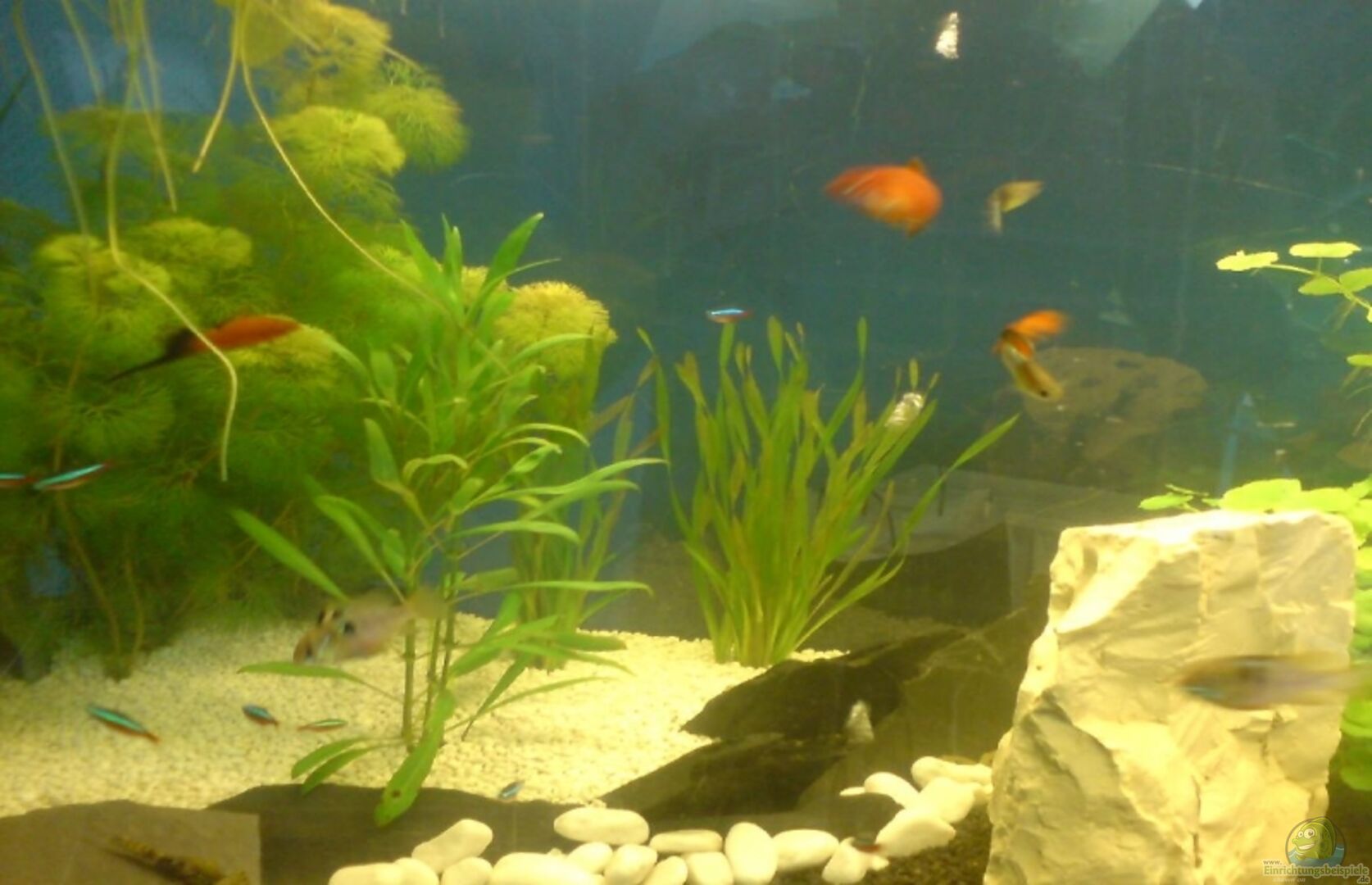 Pflanzenreiche Bereiche bieten Versteckmöglichkeiten, während offene Schwimmzonen den natürlichen Bewegungsdrang der Fische unterstützen. Ein dunkler Bodengrund kann die Farben der Fische besonders gut zur Geltung bringen.