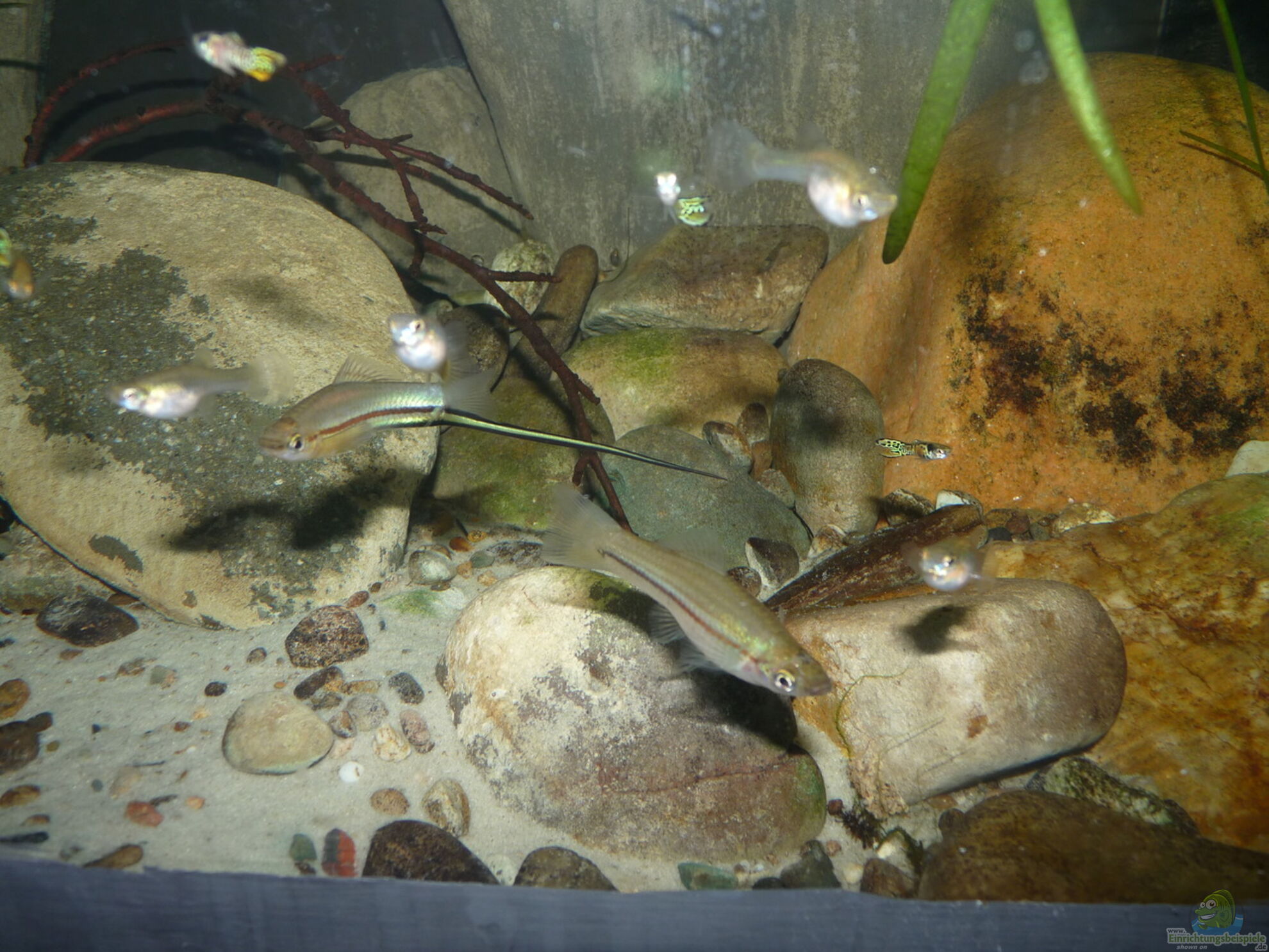 Die Einrichtung des Aquariums sollte mit einer dichten Hintergrundbepflanzung erfolgen, die zahlreiche Versteckmöglichkeiten und Rückzugszonen bieten. Im Vordergrund sollte viel freier Schwimmraum bleiben.