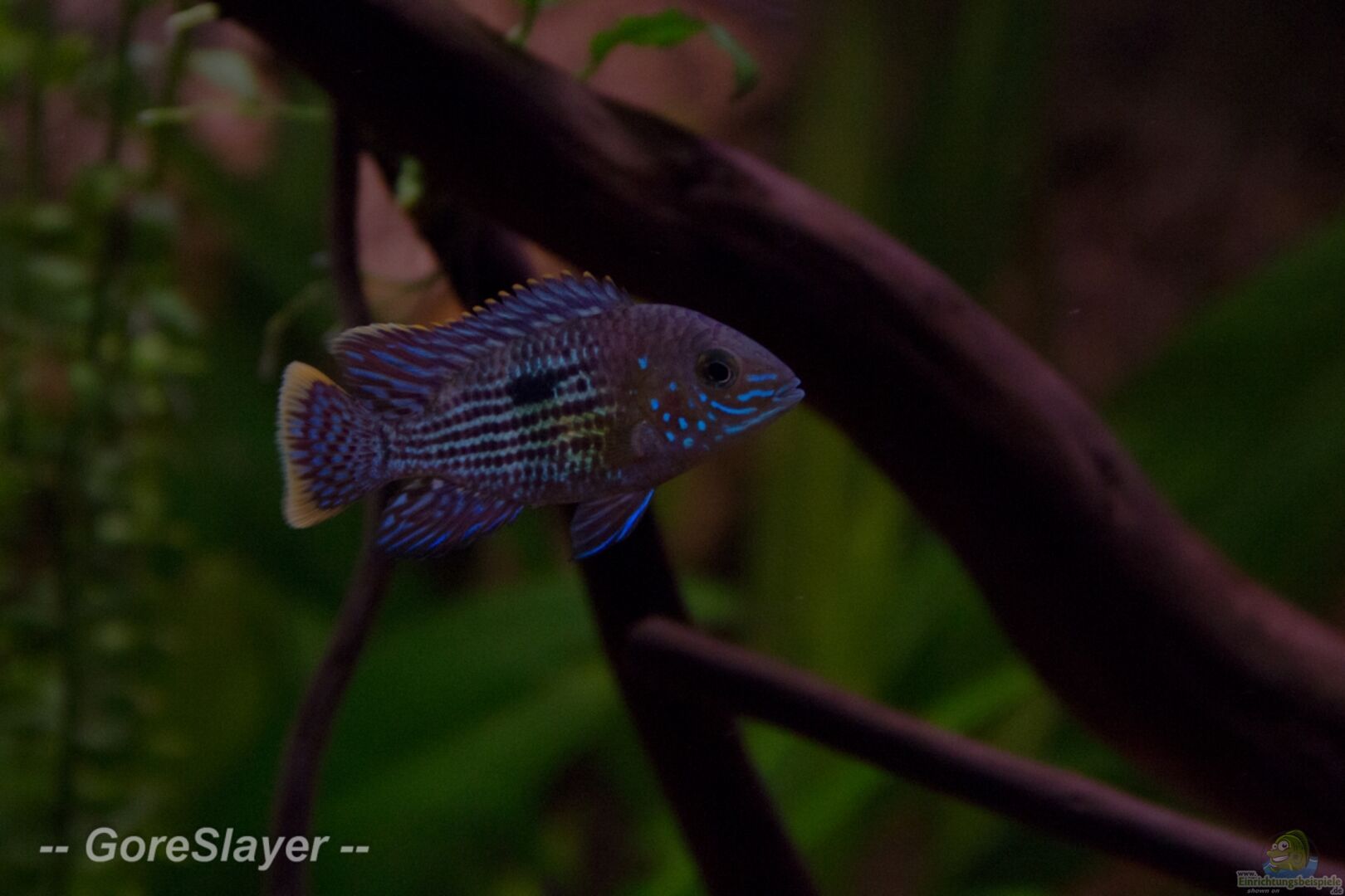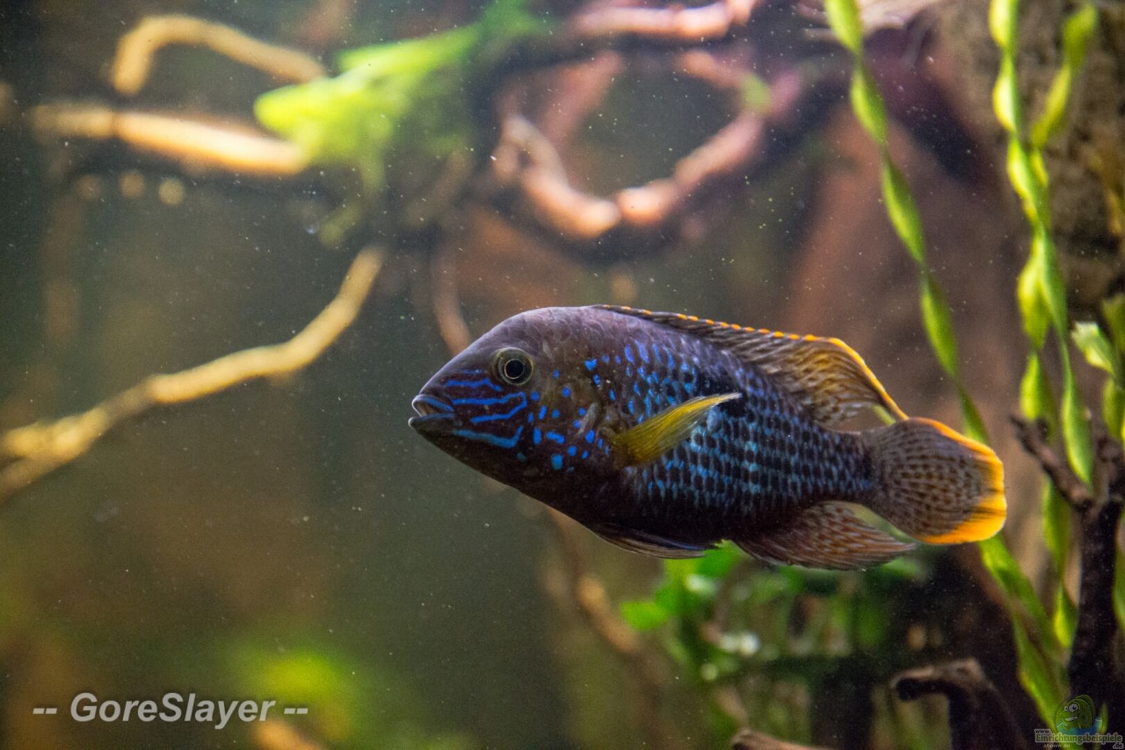 Bei Aequidens rivulatus (Goldsaumbuntbarsch) handelt es sich um eine Buntbarschart, die ursprünglich aus Südamerika stammt und dort in Equador und in Peru lebt.