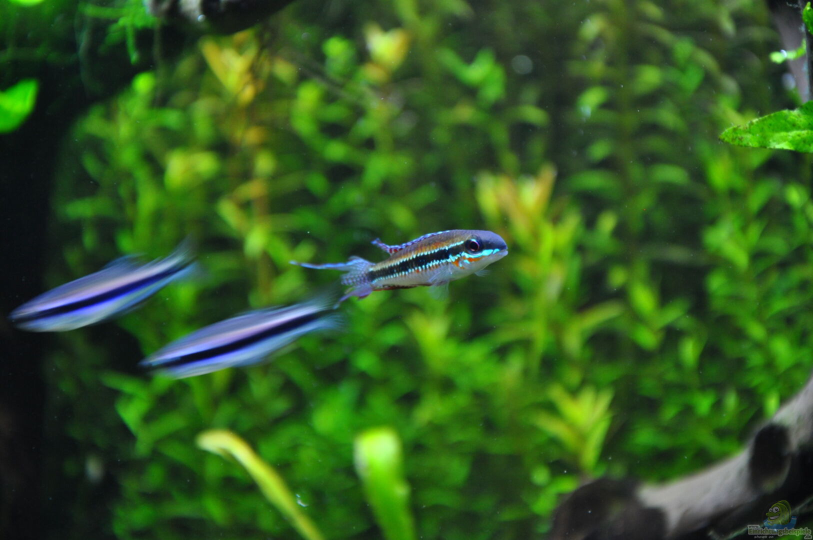 Dicrossus filamentosus erreichen im Aquarium max. 9 cm Länge. Dicrossus filamentosus sind für Aquarien ab 160 Litern geeignet.