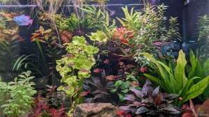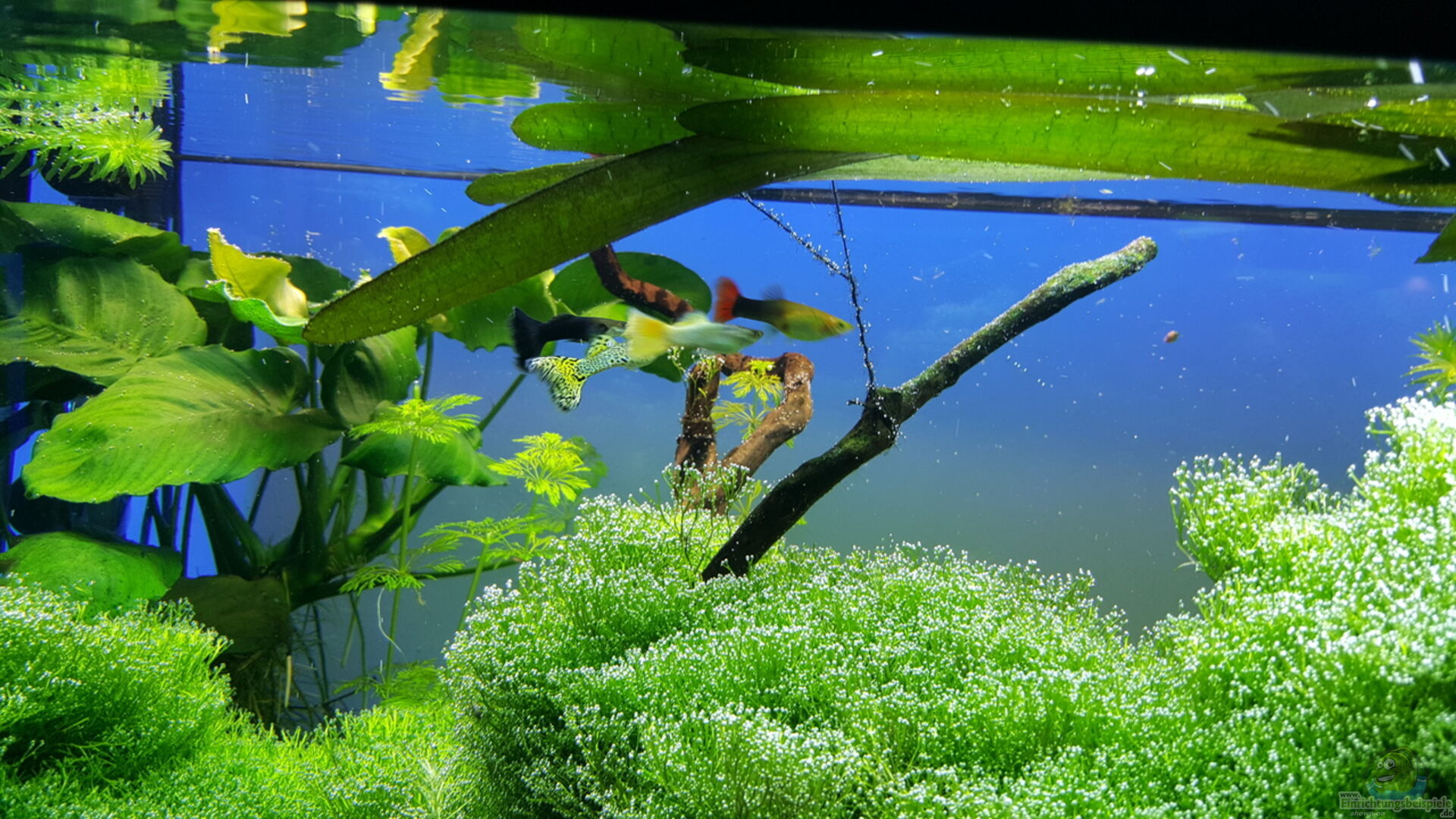 Als Aquarium kommen Behälter ab einer Größe von 54 Litern und einer Kantenlänge ab 60 cm in Frage. In ein Nano Beim Aquarium einrichten für die Zahnkarpfen ist es wichtig, dass das Aquariumbecken teilweise dicht bepflanzt wird. Da die Fische nicht an die Aquarienpflanzen gehen, ist die Auswahl zum Beispiel aus dem Pflanensortiment von Dennerle groß. Der verwendete Bodengrund spielt bei der Guppyhaltung keine Rolle.