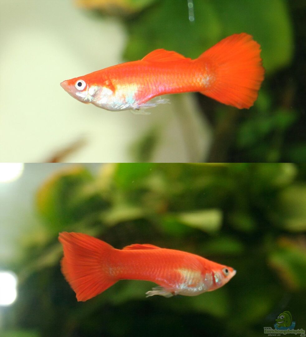 Ob ein Weibchen trächtig ist, lässt sich daran erkennen, dass es dann etwas fülliger wird. Auch der Trächtigkeitsfleck über der Afterflosse kann ein Hinweis darauf sein.
