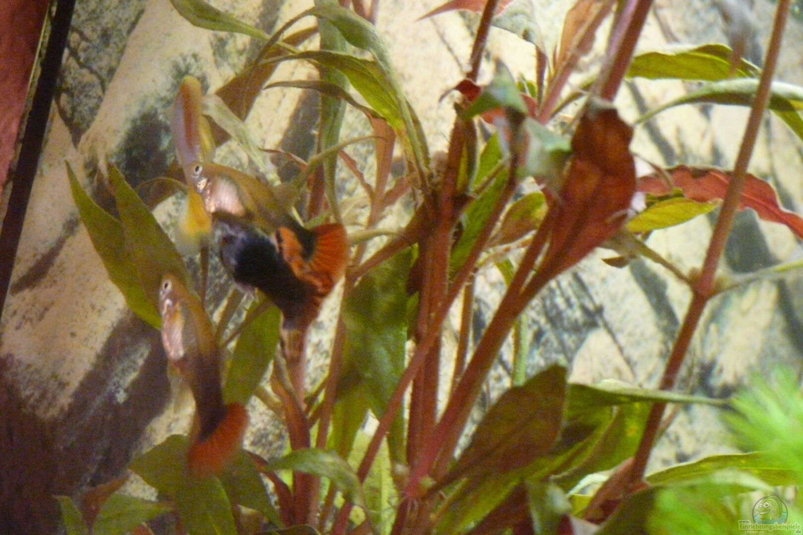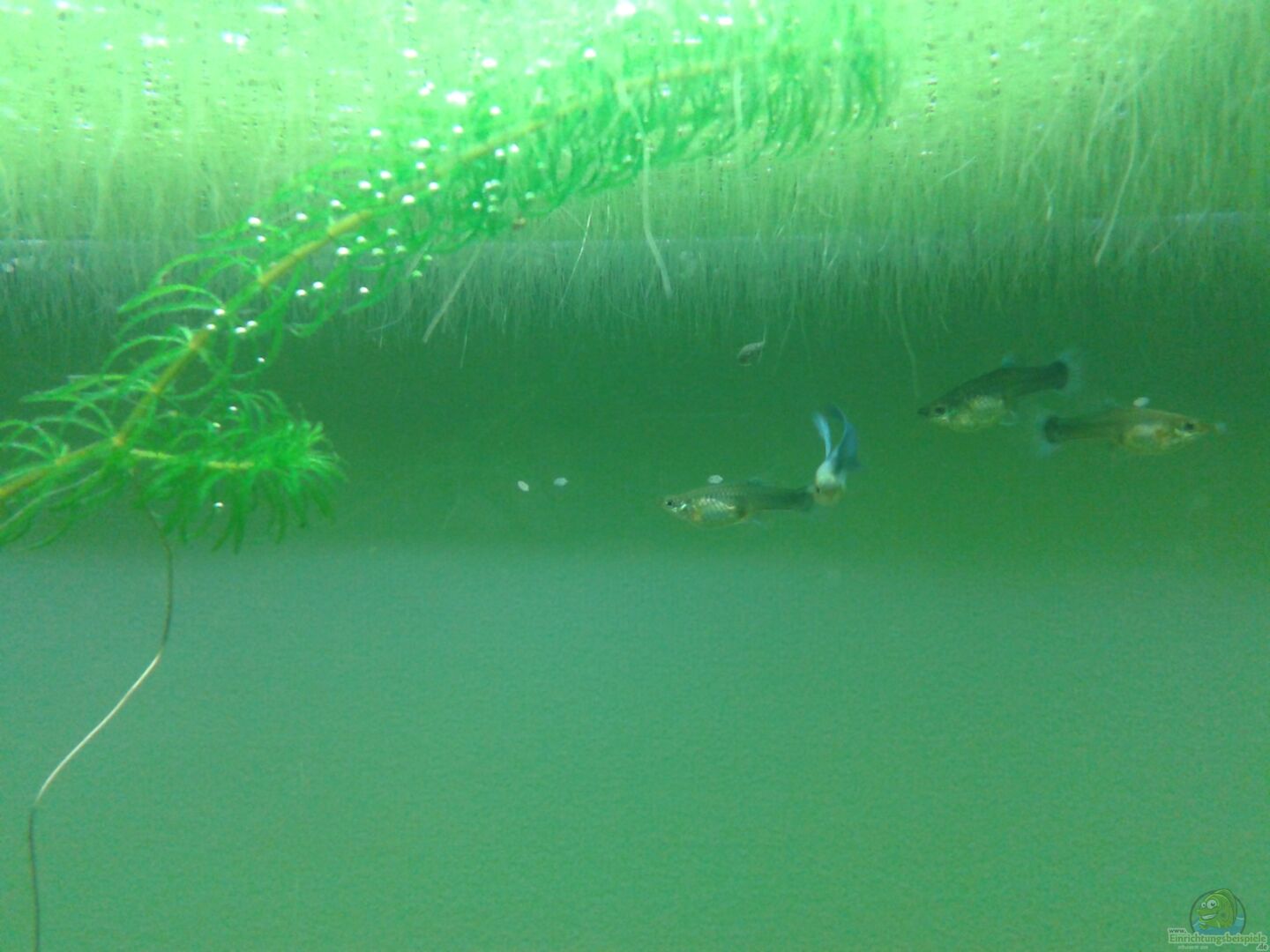 Die Aufzucht kann im Gesellschaftsbecken erfolgen. Aufgrund der Menge an Jungfischen kommt auch hier in der Regel immer wieder Guppynachwuchs durch.