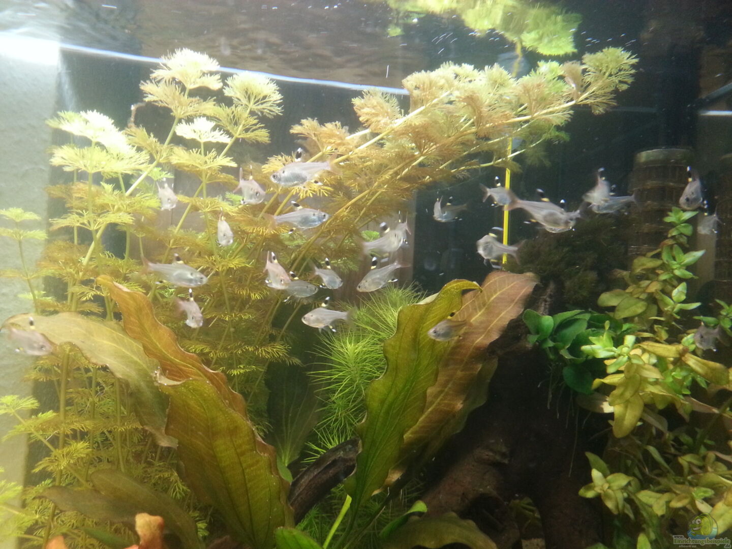 Das Aquarium für Pristella maxillaris sollte mindestens 120 Liter fassen und mit einer dichten Hintergrundbepflanzung eingerichtet werden, die genügend freien Schwimmraum beläßt.