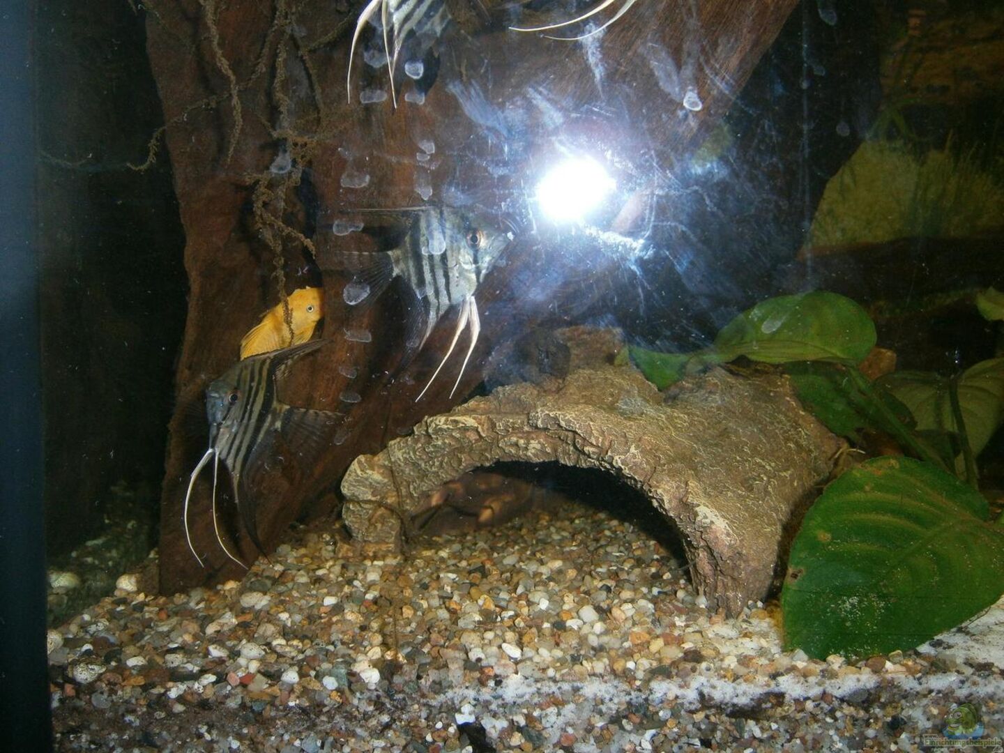 Pterophyllum scalare ist ein Substratbrüter, der bevorzugt an senkrechten Steinen oder der Aquarienscheibe ablaicht.