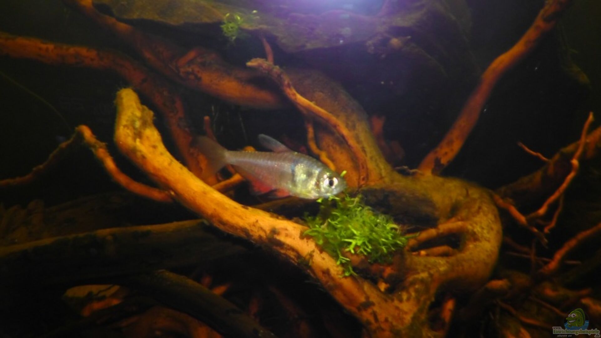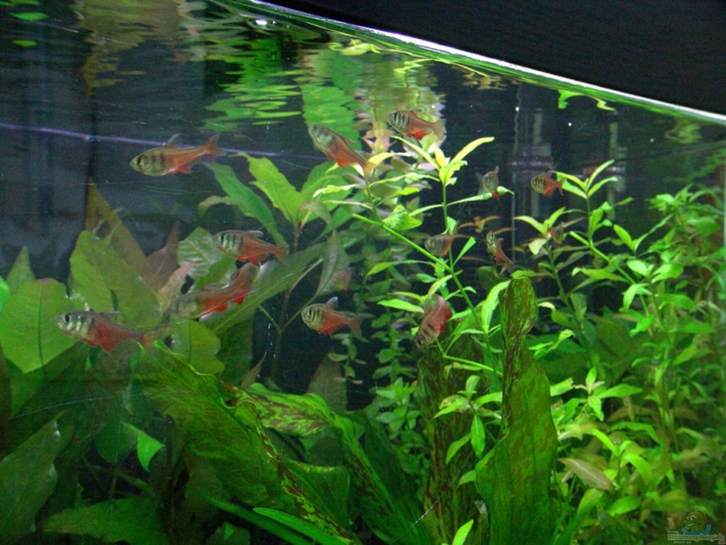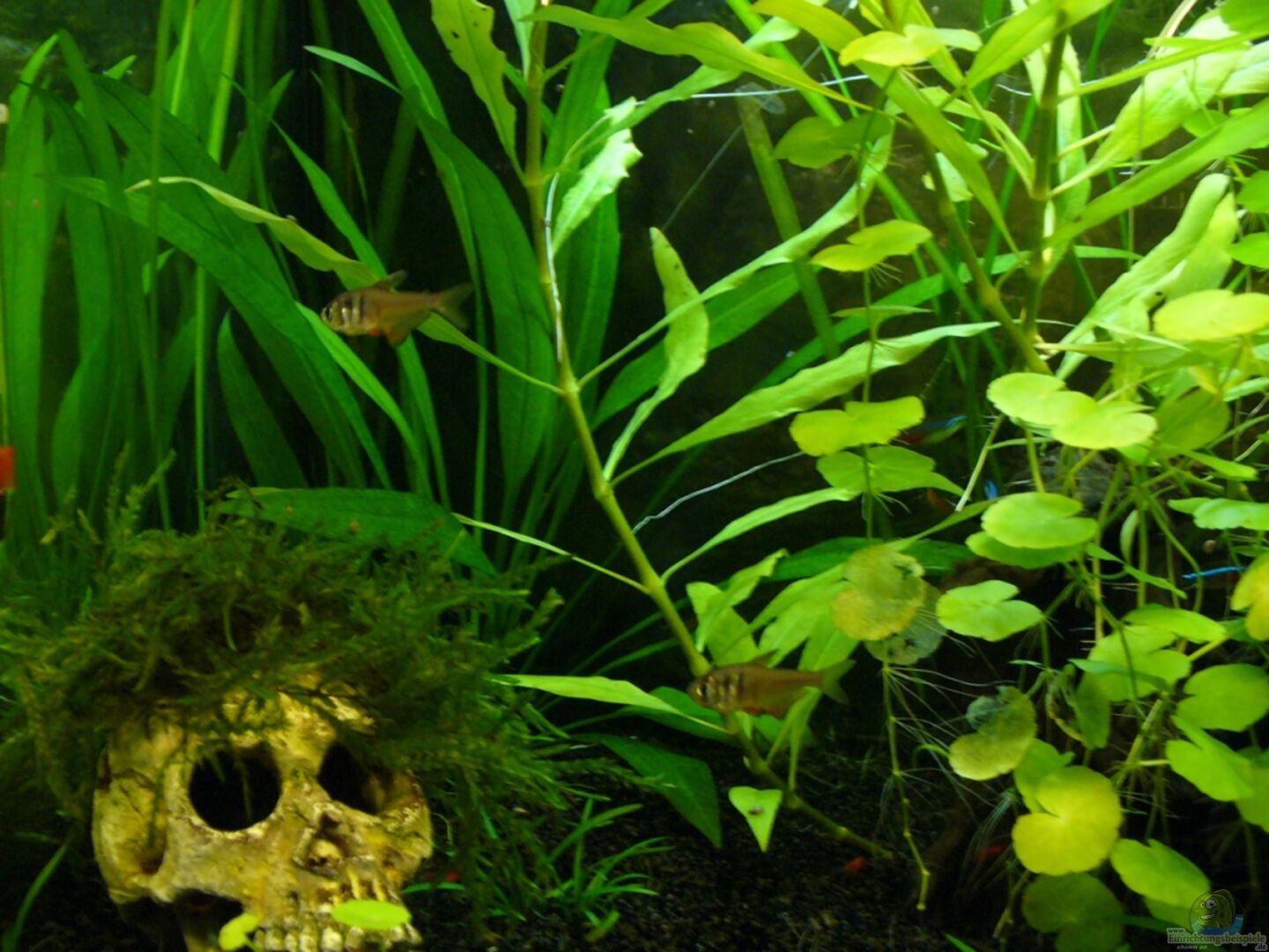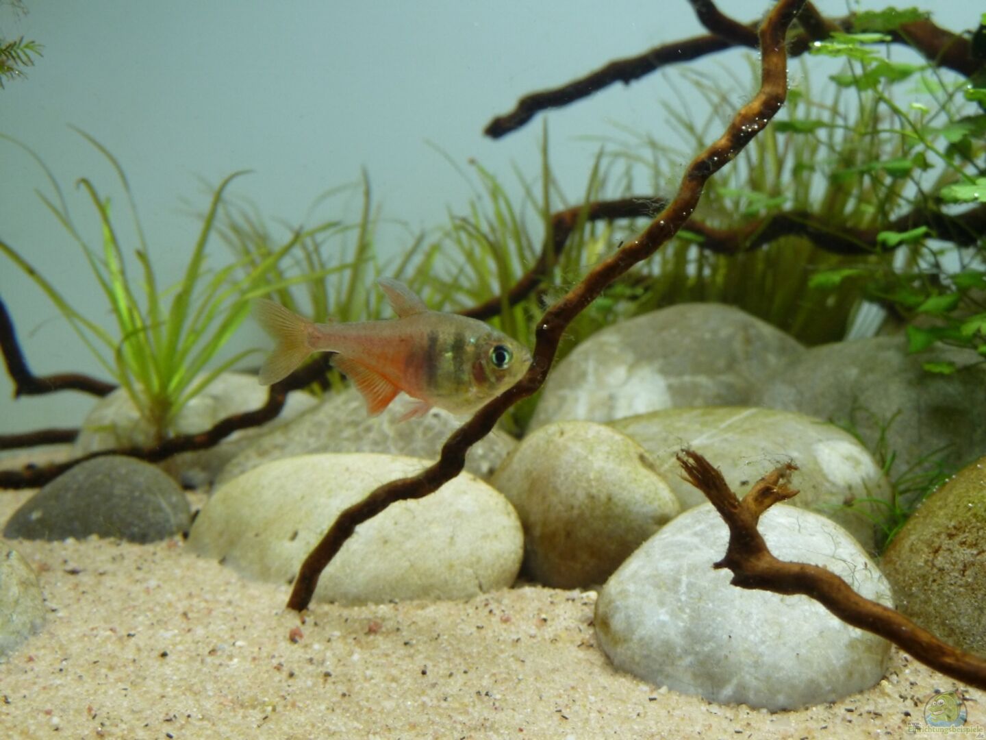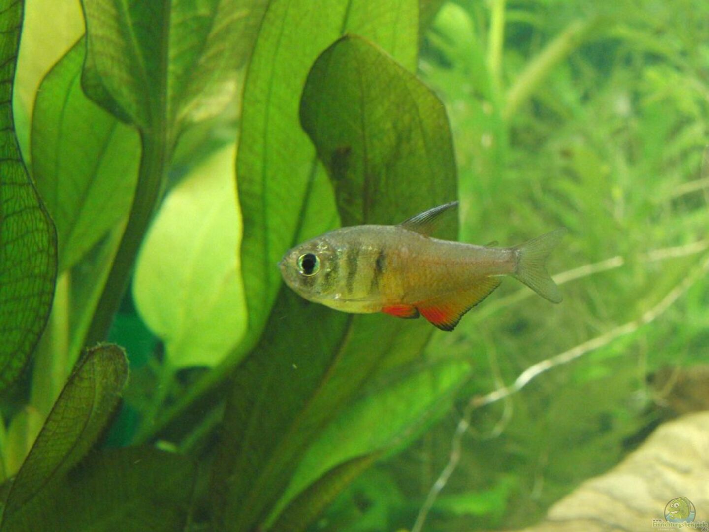 - Hemigrammus erythrozonus (Glühlichtsalmler) – dezenter, leuchtender Streifen