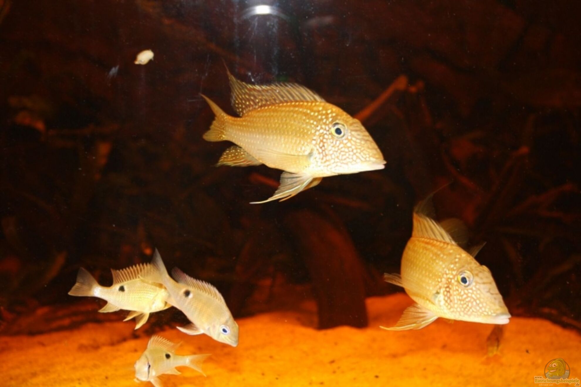 Das Aquarium für Satanoperca leucosticta sollte mit einer dicken Sandschicht und robusten Pflanzen eingerichtet werden.