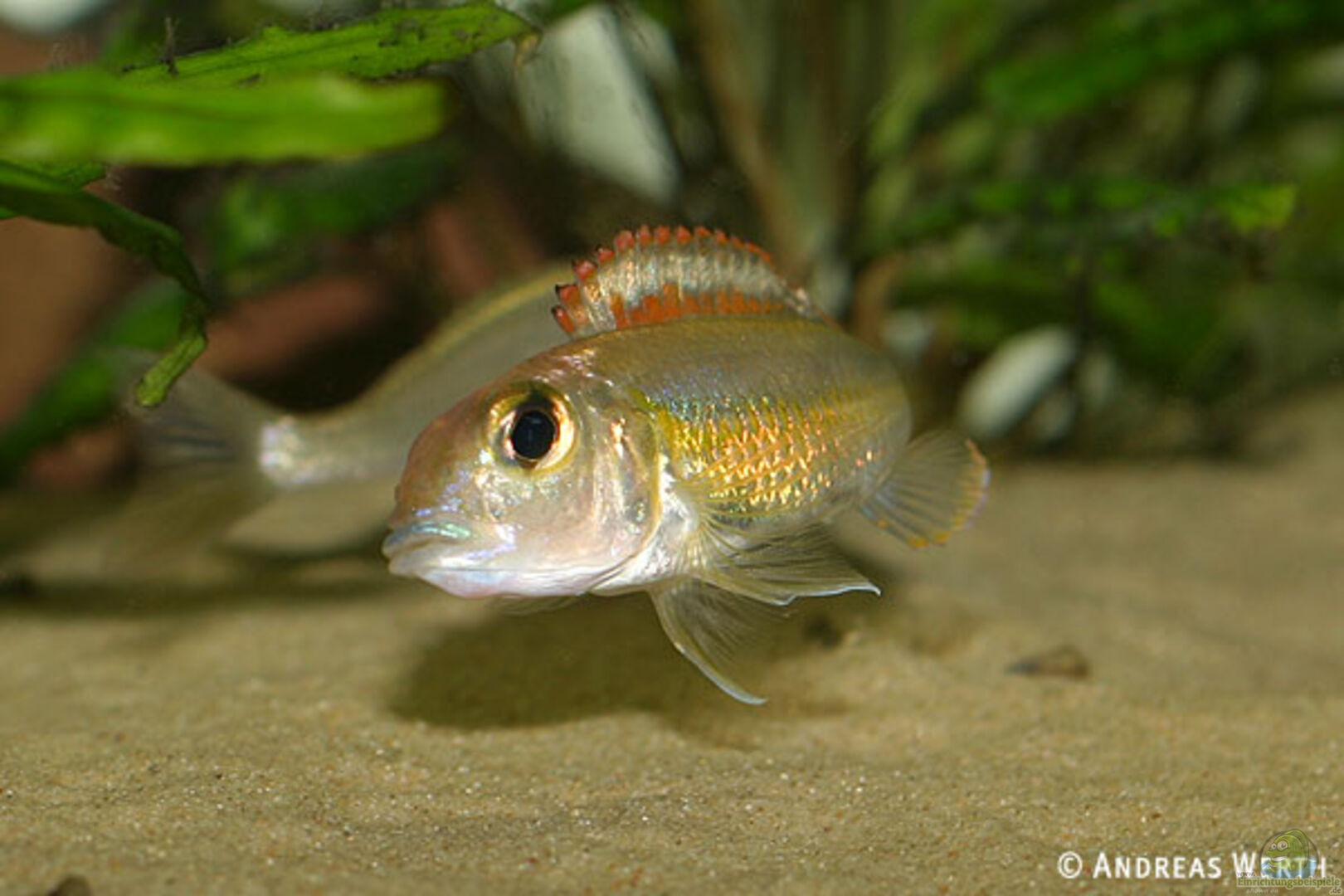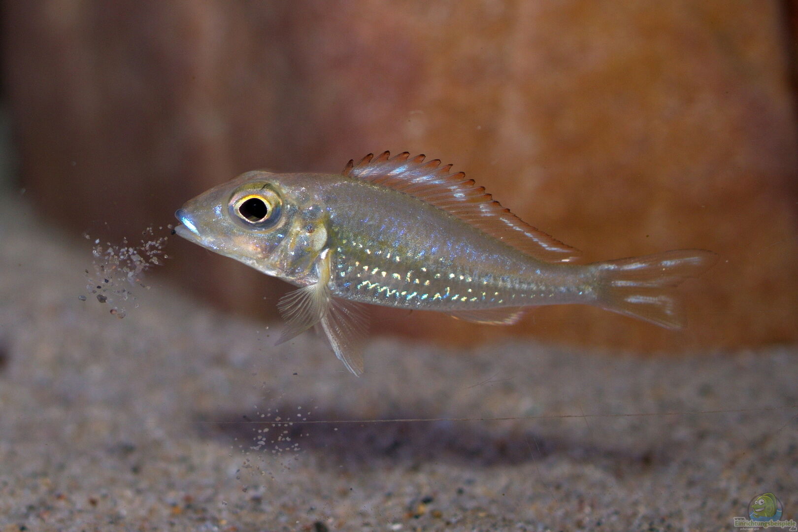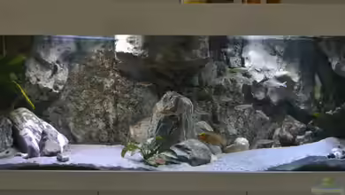 Das Becken sollte unbedingt mit Sand als Bodengrund eingerichtet werden. Die Schicht sollte mindestens 5 cm betragen, damit sich die Sandcichliden problemlos im Boden eingraben können. Mit Steinen sollten Reviergrenzen und Versteckmöglichkeiten geschaffen werden.