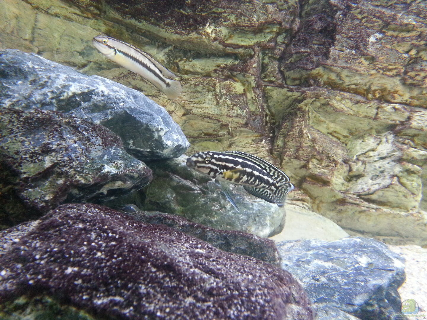 Buntbarsche der Gattung Julidochromis leben in Felsspalten und Höhlen. Entsprechend sollte das Aquarium mit zahlreichen Felsen und Steinen eingerichtet werden.