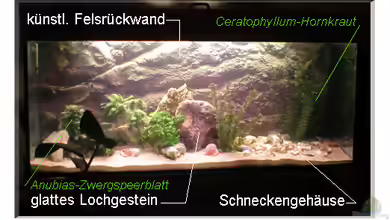 Der Hecquis Schneckenbuntbarsch fühlt sich in den für den Tanganjikasee typischen Wasserwerten am wohlsten: Temperatur 24-27°C, pH-Wert 7.5-8.5, Gesamthärte 10-20°dGH.