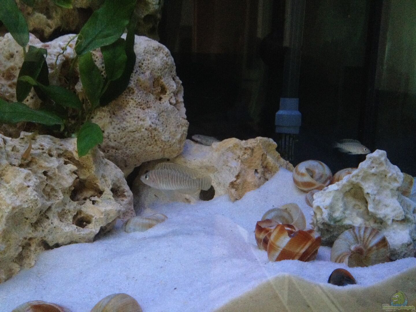 Die Einrichtung eines Aquariums für Schneckenbuntbarsche erfolgt in der Regel mit einem Bodengrund aus Sand, auf dem zahlreiche (mehr als Weibchen vorhanden sind) Schneckenhäuser platziert werden. Meist ist sonst keine Einrichtung erforderlich. Einzelne Steine können aber als Sichtbarrieren dem Becken eine bessere Struktur geben.