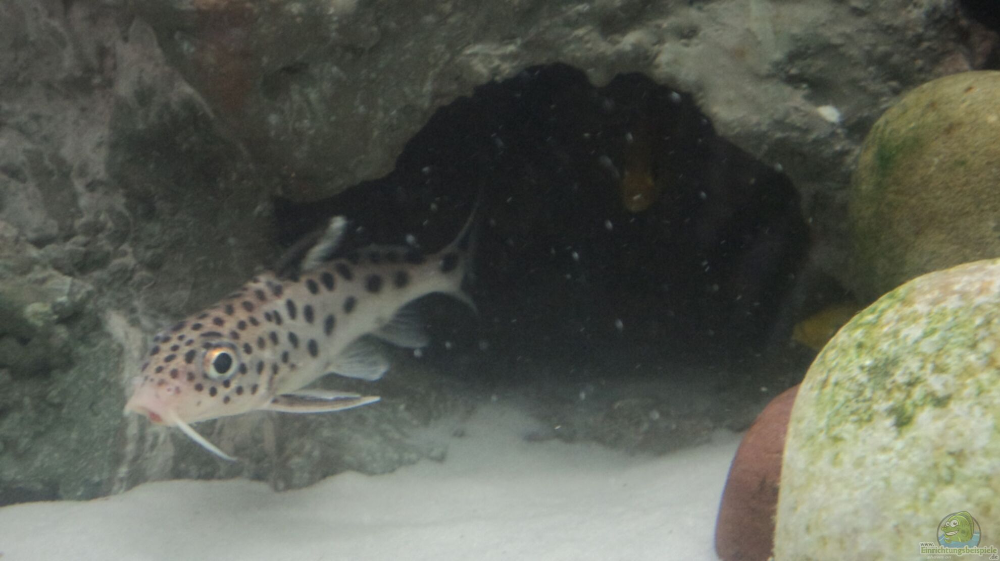Das Aquarium für Synodontis grandiops sollte mit einem Bodengrund aus Sand werden und zahlreichen Steinen eingerichtet werden, so dass Höhlen und Verstecke entstehen.