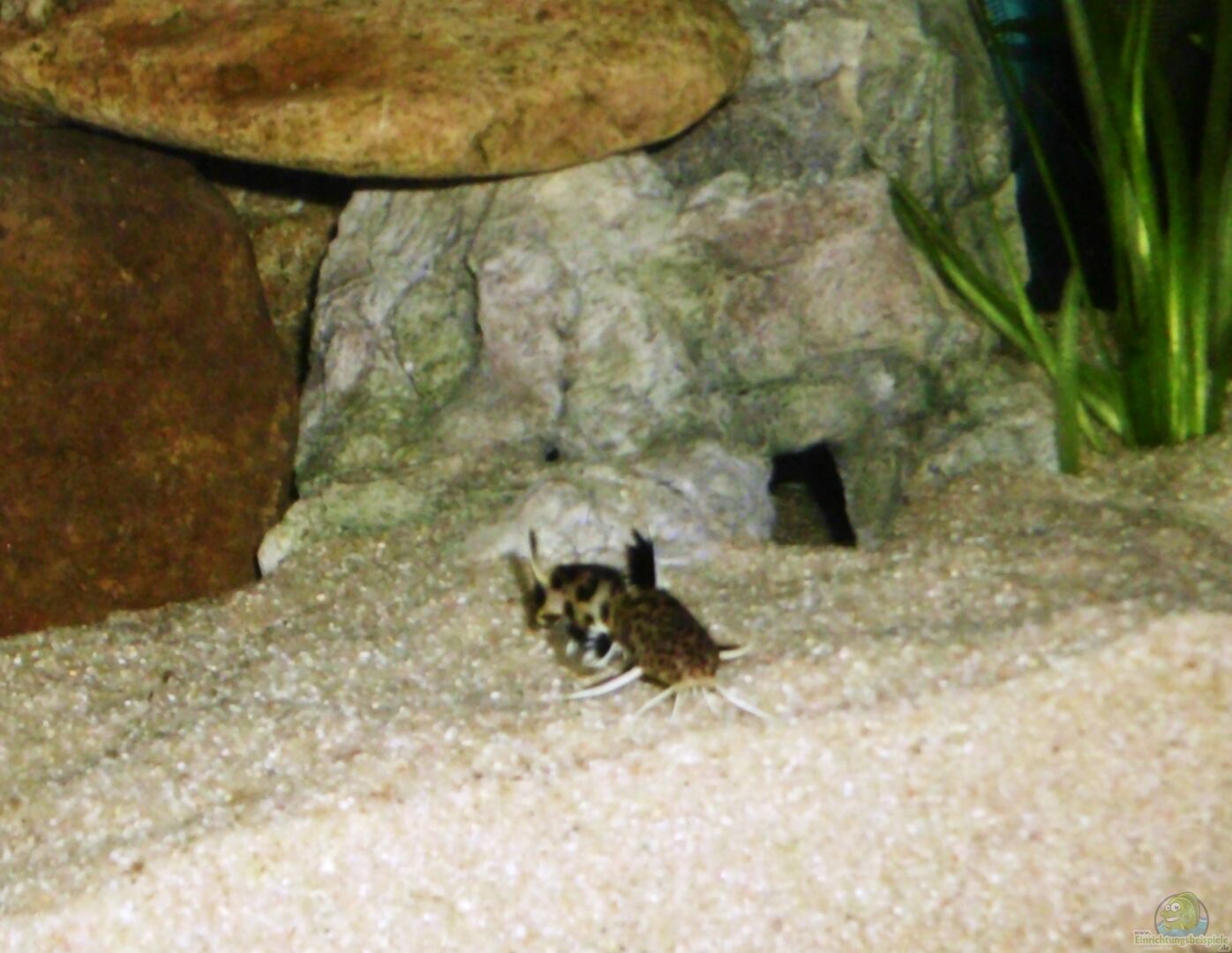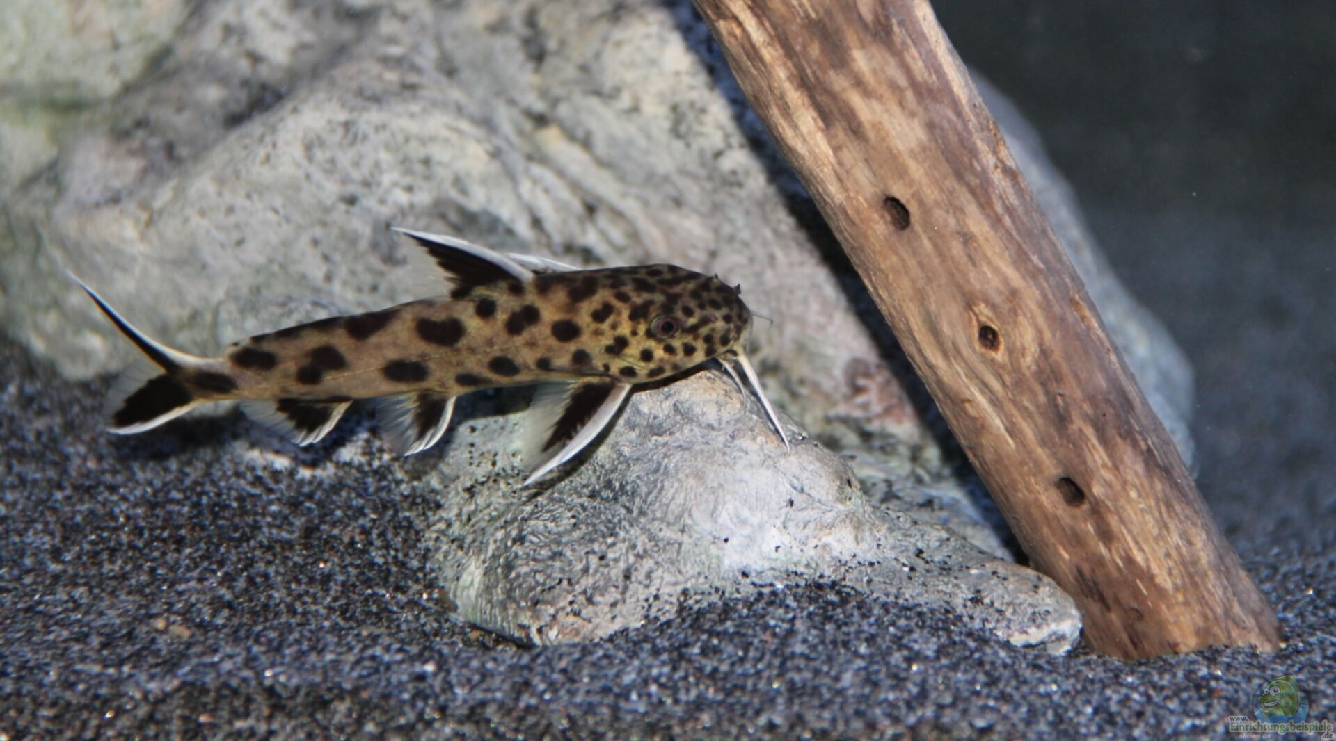 Das Aquarium für Synodontis lucipinnis sollte mit Steinen so eingerichtet werden, dass zahlreiche Rückzugsmöglichkeiten für die eher dämmerungs- und nachtaktiven Fische entstehen.
