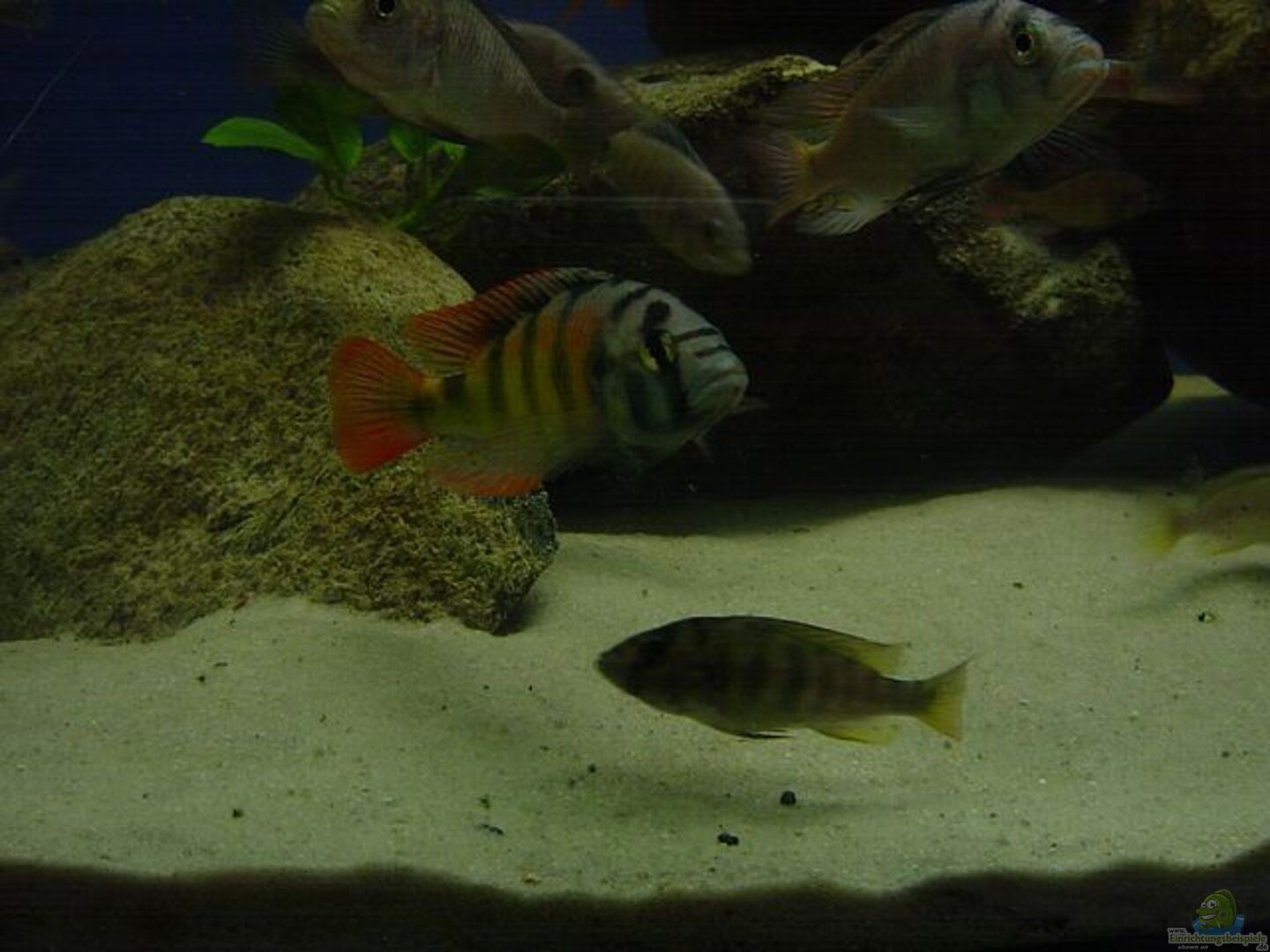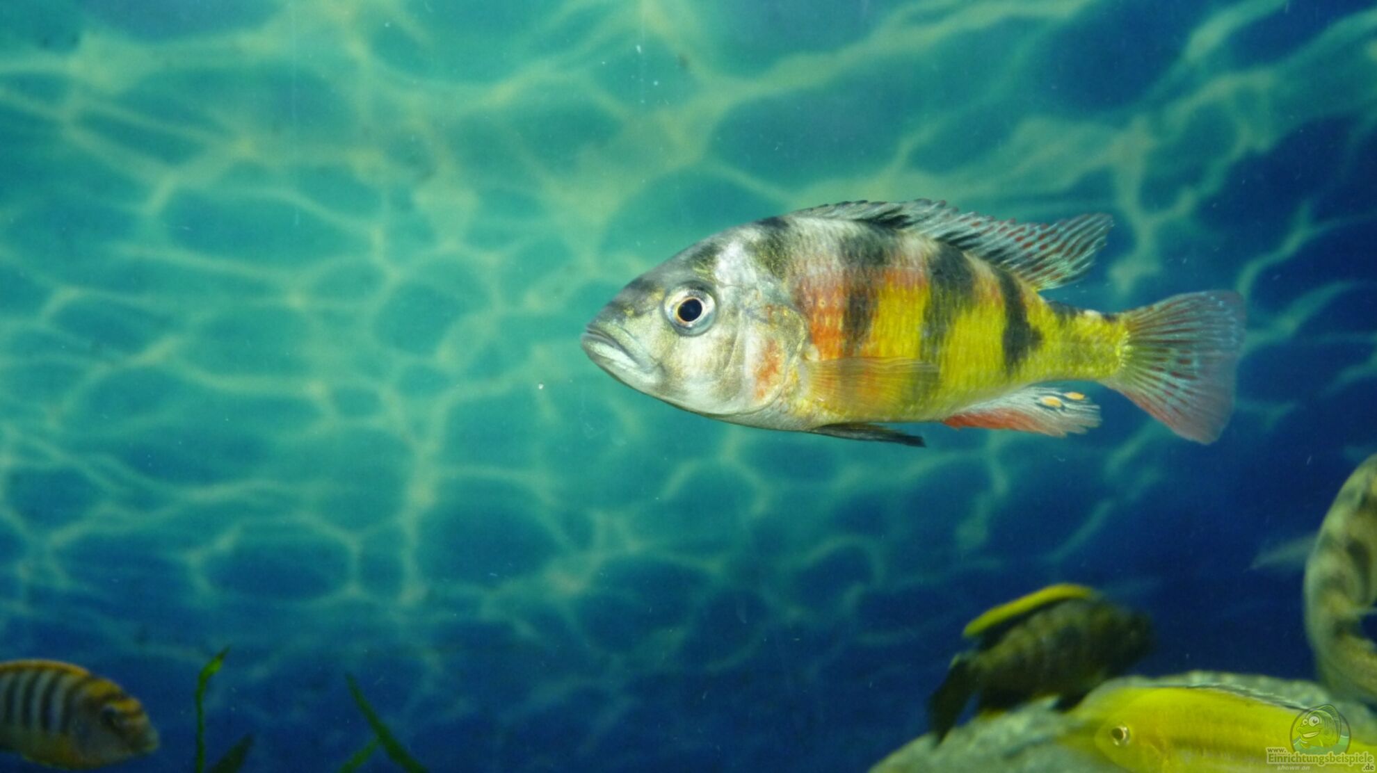 Das Aquarium für Haplochromis sp. thick skin sollte mit einem sandigen Bodengrund und großen Steinaufbauten eingerichtet werden.